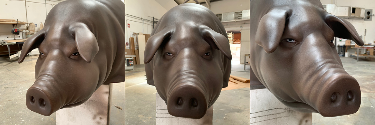 Toro mecánico con cuerpo y cabeza de cerdo para este anuncio de Foster. [supsystic-gallery id=63]